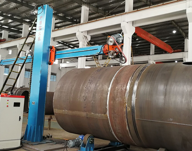 該設備主要用于大、中型焊接鋼管、罐體焊縫的磨削加工。適合內(nèi)外直焊縫、環(huán)焊縫打磨拋光。生產(chǎn)效率高,勞動強度低,焊縫打磨效果好,且不傷管材本體,是打磨焊接鋼管管端直焊縫的理想設備。